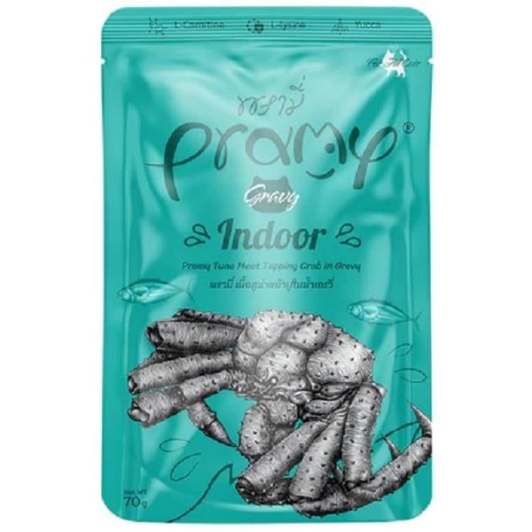 Pramy Cat Gravy Indoor Ton Balıklı Yengeçli Kedi Maması, evde yaşayan kediler için özel olarak formüle edilmiştir. Ton balığı ve yengeç içeriğiyle hem besleyici hem de lezzetlidir.