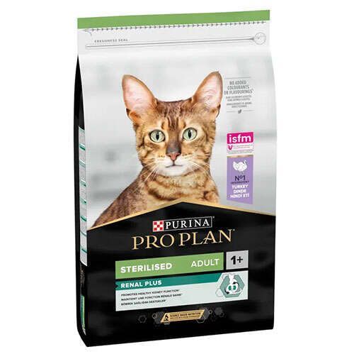 Proplan Renal Plus Hindili Kısır Kedi Maması kısırlaştırma sonrası hassaslaşan ve yeme eğilimi artan genç ya da yetişkin kısırlaştırılmış kedilerde kilo alımının ve taş oluşumunun önlenmesini sağlayan, lezzetliliği yüksek bir formüldür.